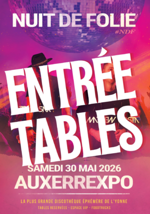Date : Samedi 30 mai 2026 Horaires d’ouverture au public : 21h – 5h Lieu : Auxerrexpo, 1 rue des plaines de l’Yonne, 89000 Auxerre